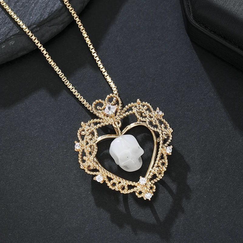 Bohemian Neutral Skull Heart Necklace